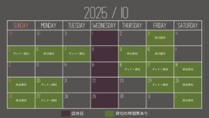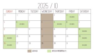 〜10月営業日のご案内〜