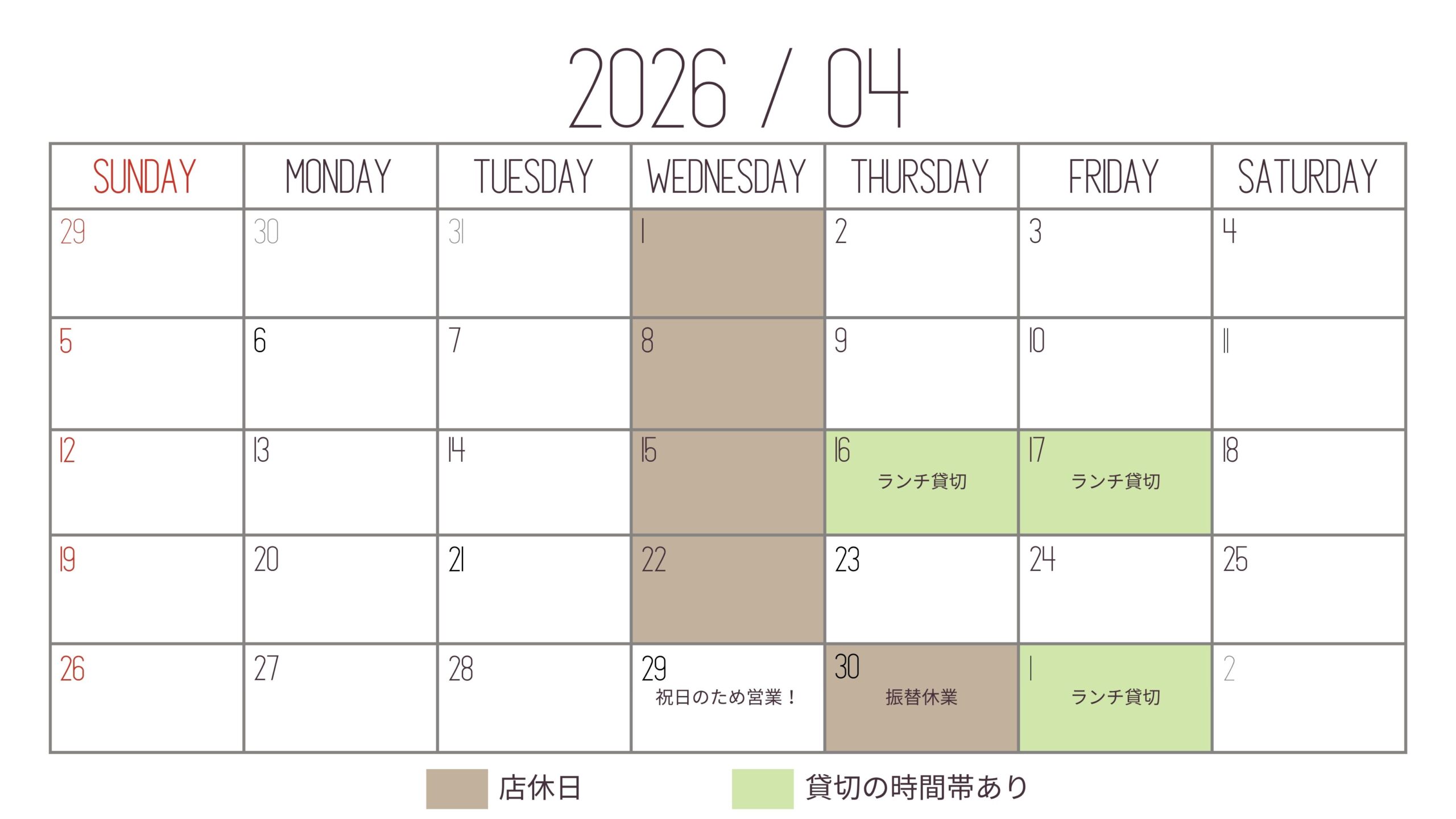 若鶴酒造のレストラン【竈flamme炭三郎】より4月営業日のご案内でございます