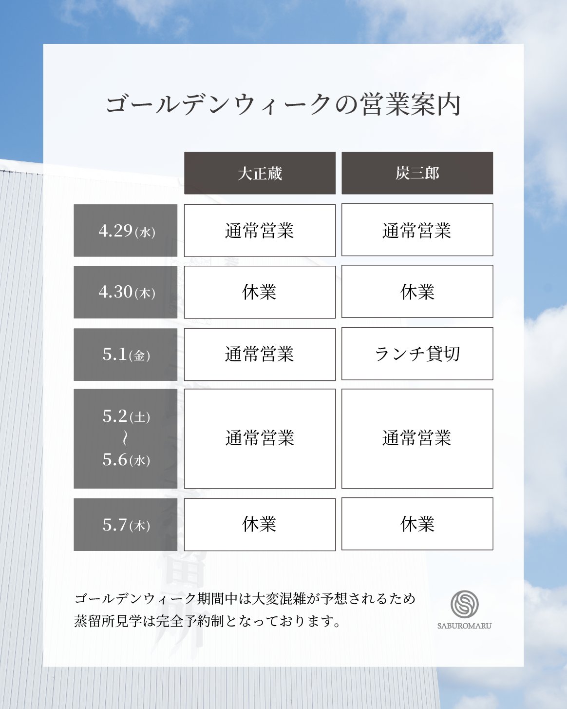 5月・ゴールデンウィークの営業についてご案内いたします。