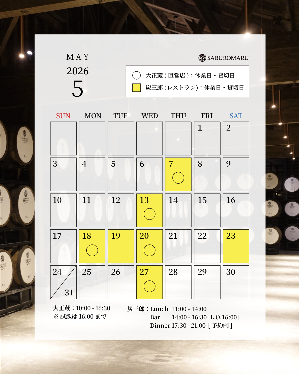 いつも「大正蔵」「竈 flamme 炭三郎」をご利用いただき誠にありがとうございます。